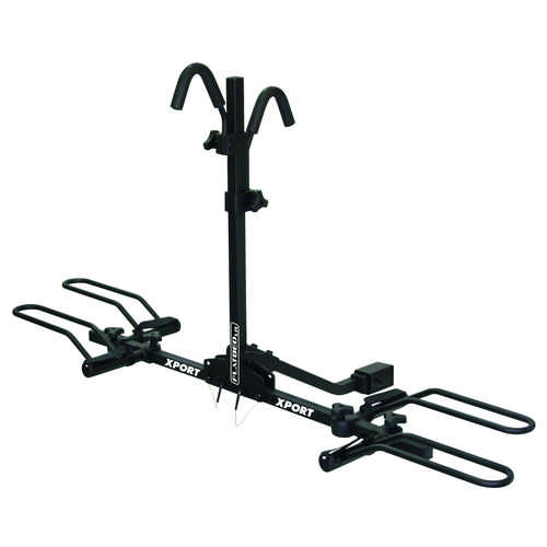 - 2-bike model fits either 2" or 1 1/4" hitches by use of an adapter sleeve